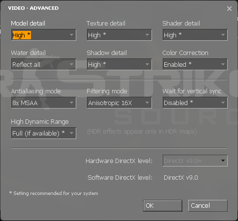 24 bitars färg 24bit djup 1x multisampling = genomsnitt 45-50 FPS