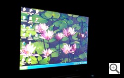 Den blanka skärmen på M2010 snygg, vilket är fallet med många LED-bakbelysta netbook skärmar. Färgerna är rika och levande, med djup kontrast och utmärkta svarta nivåer. Peak ljusstyrkenivåer var stor för visning i ljusa kontor förhållanden, med min föredragna inställning höger vid 50%-strecket. Betraktningsvinklar ränta genomsnittet, med färger börjar invertera 20 grader framåt eller bakåt. Horisontella vinklar var mycket bättre, som sträcker sig tills skärmen bezel och reflektion började skymma utsikt över panelen.